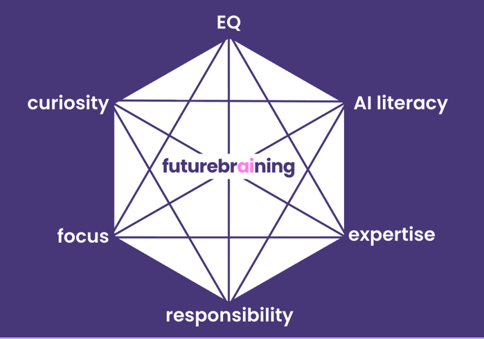 We focus on five interconnected human capabilities: expertise, focus, responsibility, emotional intelligence, and AI-literacy, all powered by curiosity.
